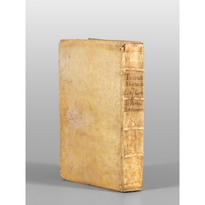 Piena pergamena rigida settecentesca, con sfregi al piatto anteriore. Macchia al frontespizio, altrimenti testo in ordine.