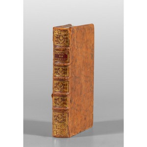 In-12°, legatura coeva in mezzo vitello nero, dorso liscio a filetti dorati. Danni alle cuffie.