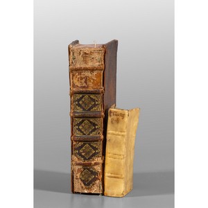 Legatura in pergamena rigida coeva con dorso a cinque nervi e tassello rosso. Cerniera anteriore lenta. Antiporta rifilata di circa mm 150 nel margine di testa, esemplare peraltro in discrete condizioni.