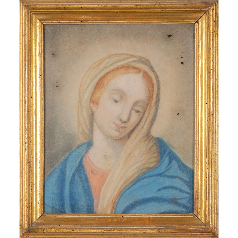 Scuola italiana sec.XVIII 'Madonna' tempera su carta, cornice in legno intagliato e dorato