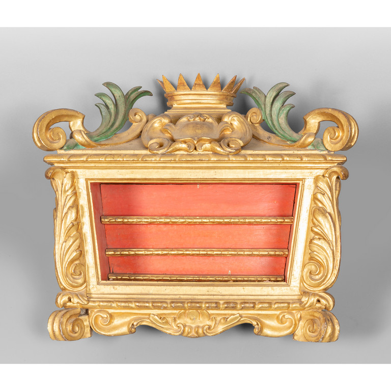 Teca Luigi XIV in legno finemente intagliato e dorato, sec.XVIII