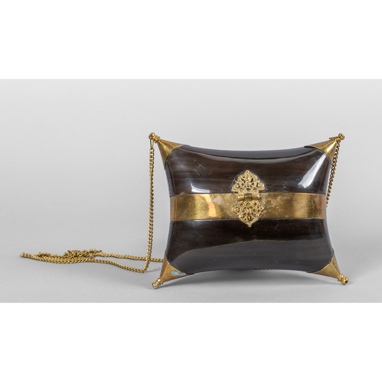 Curiosa borsetta con profili in ottone