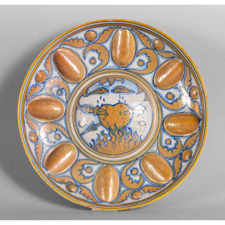 Piatto in maiolica a lustro decorato al centro con un cuore trafitto, Gubbio sec.XVIII