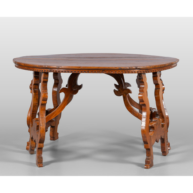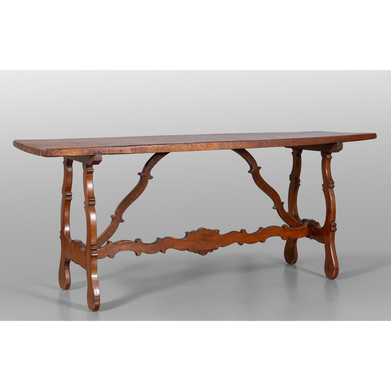 Coppia di mezzi tavoli a fratina in noce, sec.XVIII