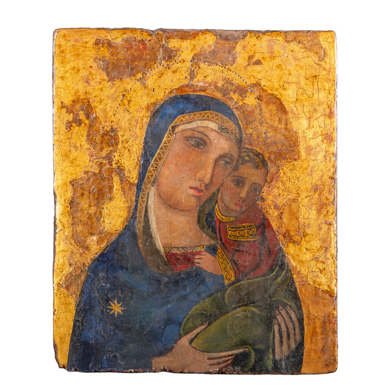 'Madonna con Bambino' olio a fondo oro su tavola, sec.XIX