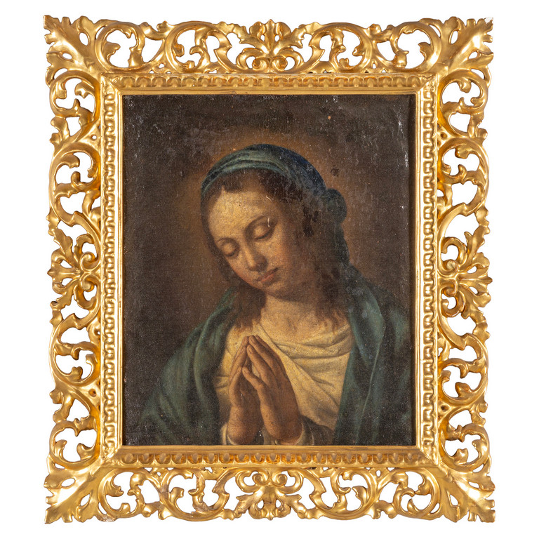 Scuola romana sec.XVIII 'Madonna' olio, cornice in legno intagliato e dorato