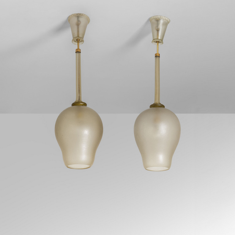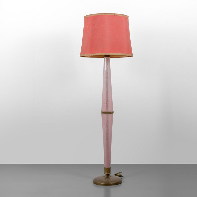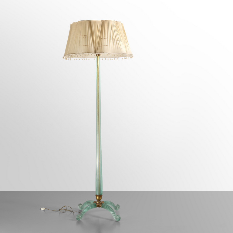 Vetro a coste, ottone, paralume in seta.