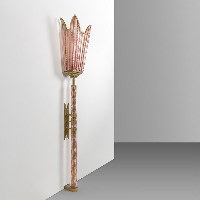 Vetro rubino e rosa, ottone.