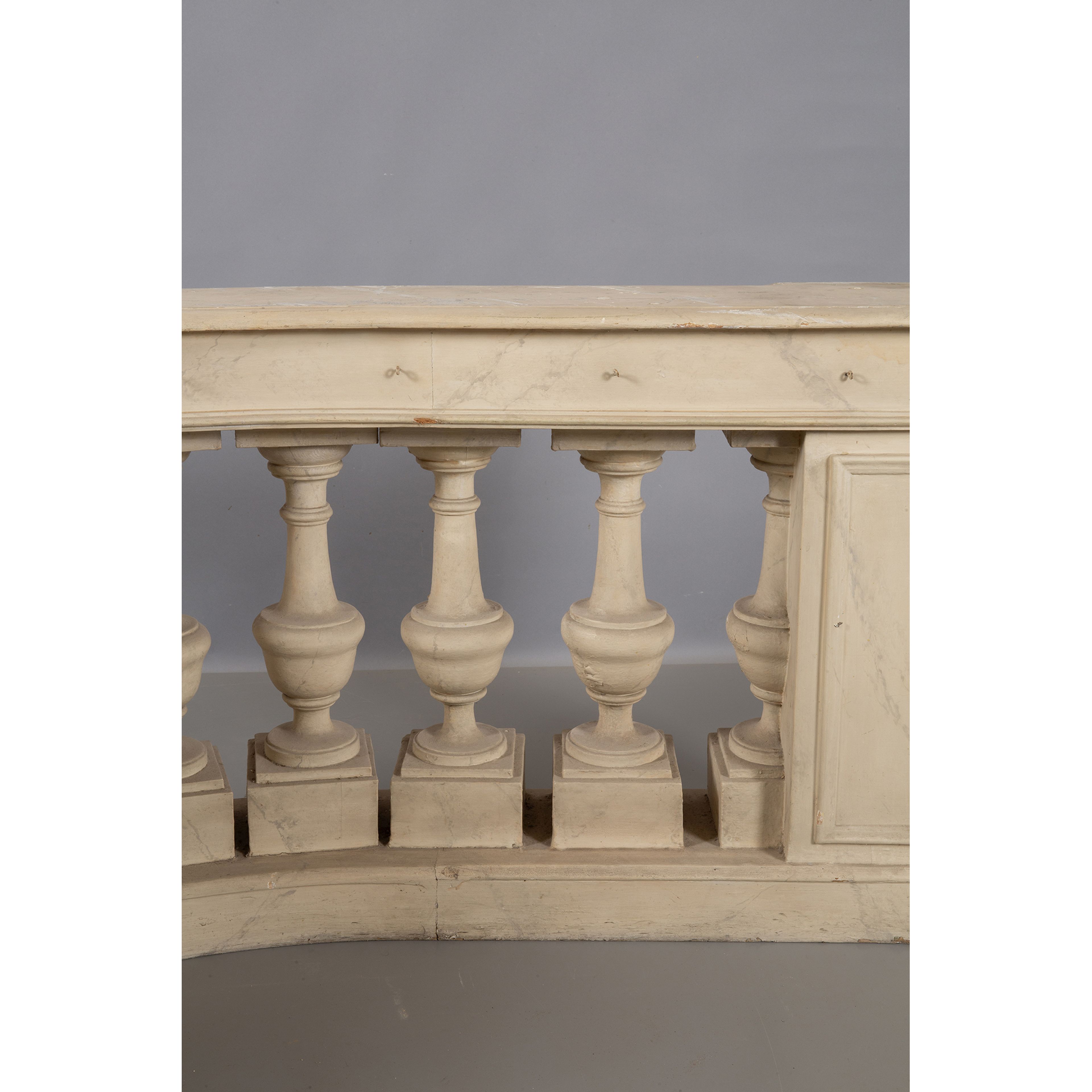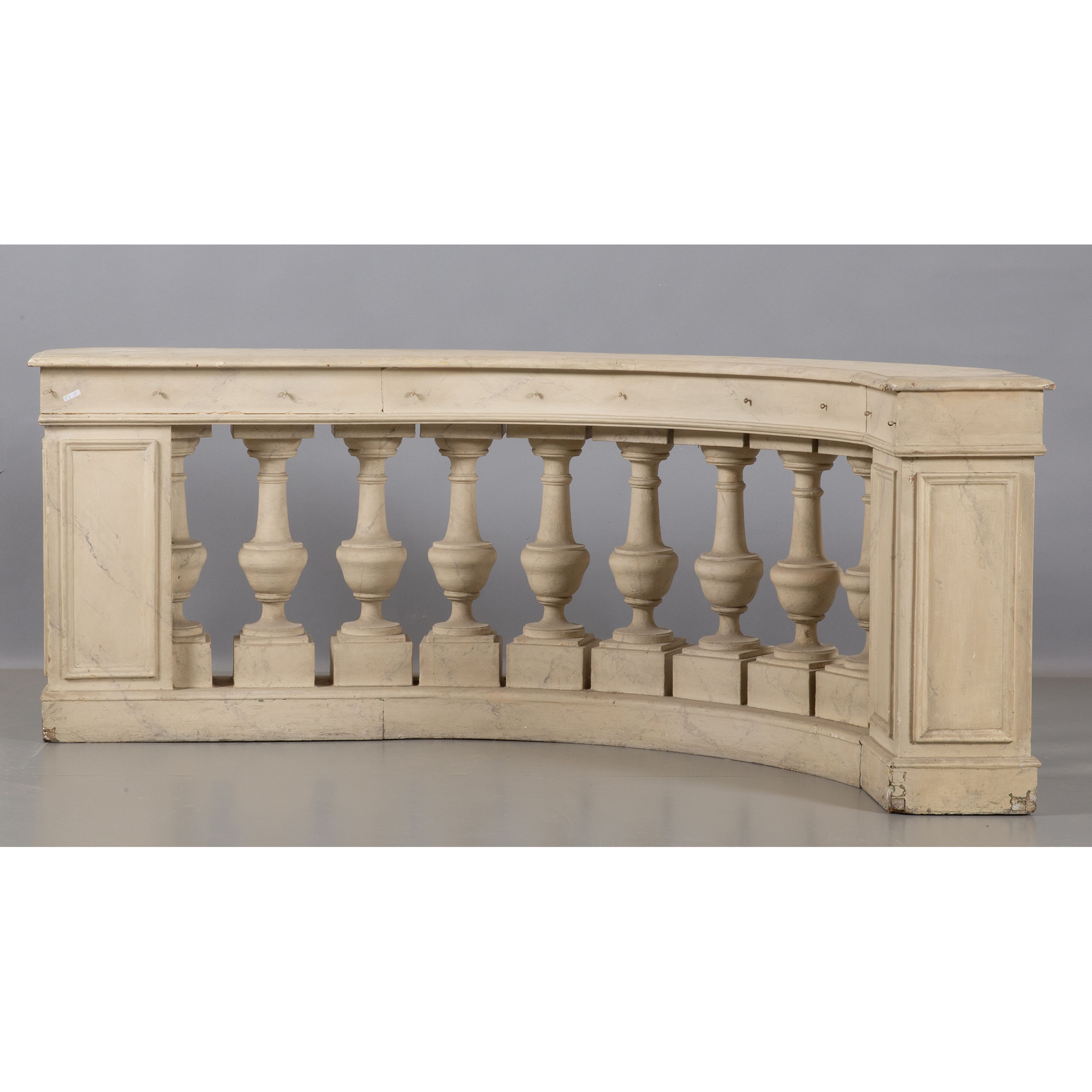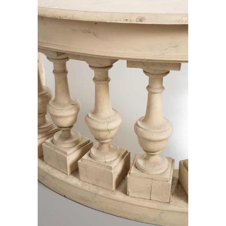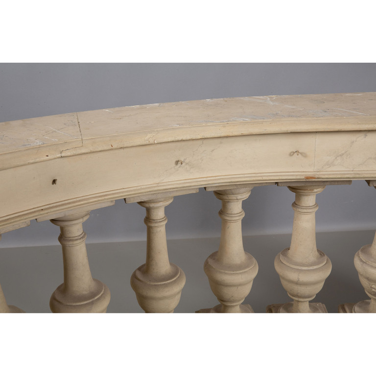 Coppia di balaustre in legno laccato a finto marmo di forma semicircolare, sec.XIX