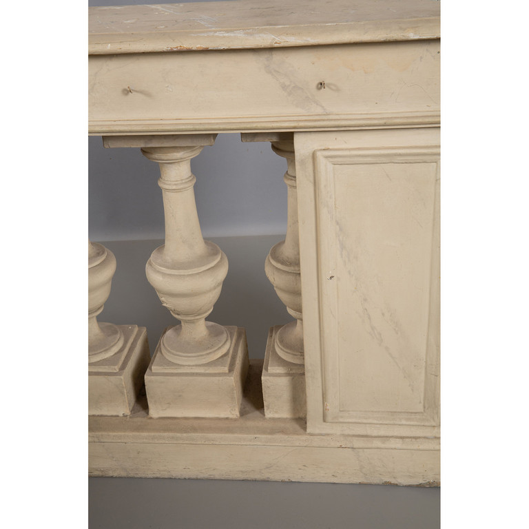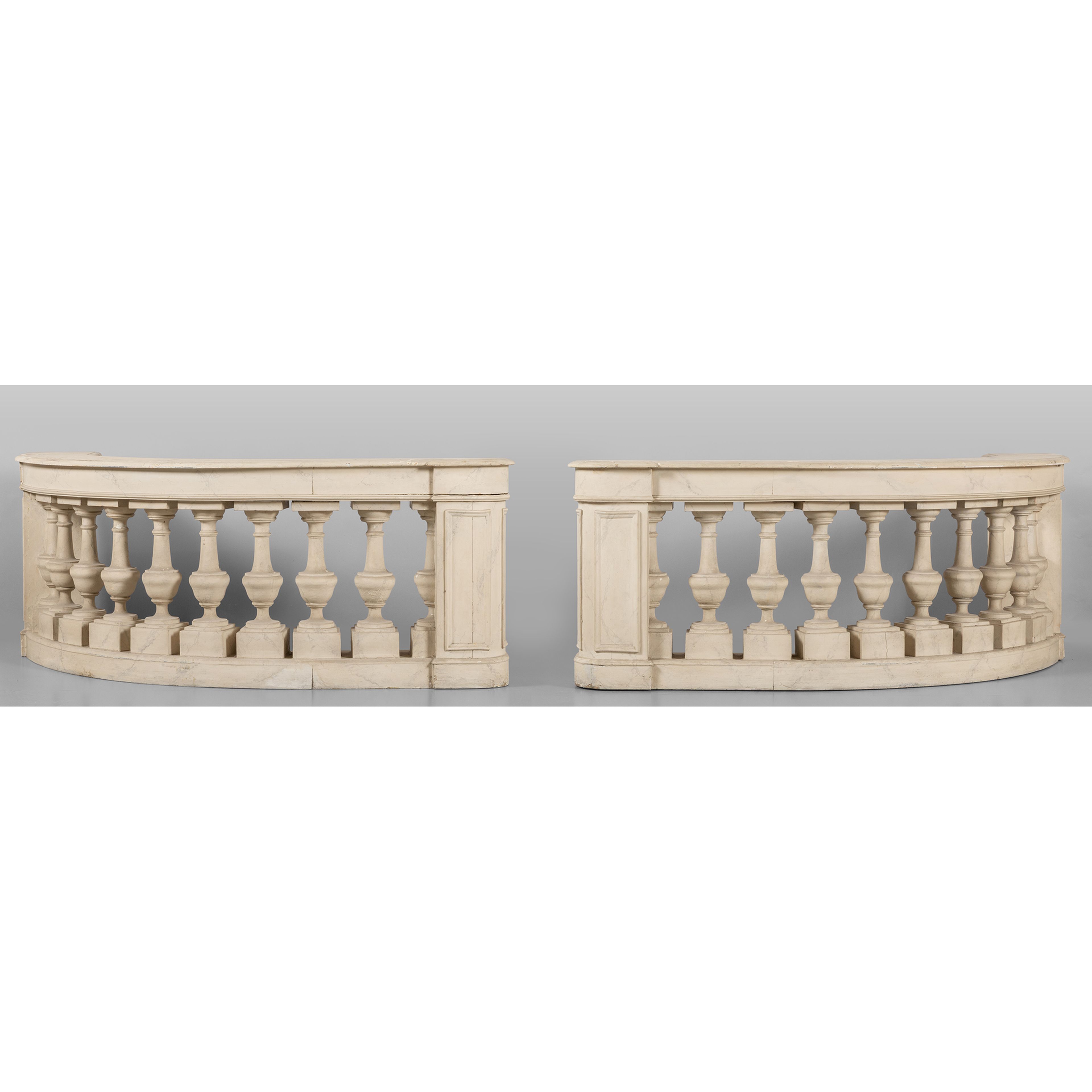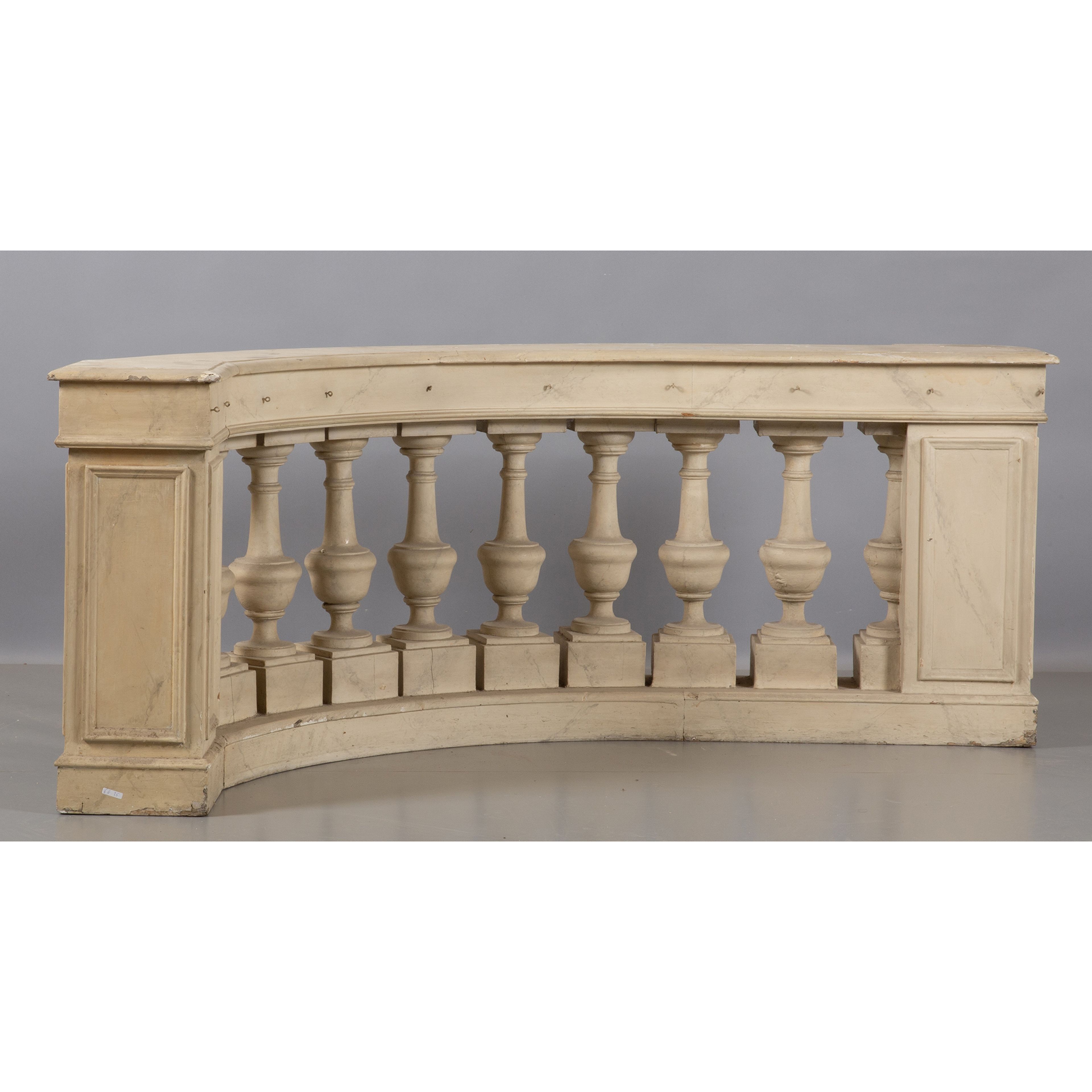 Coppia di balaustre in legno laccato a finto marmo di forma semicircolare, sec.XIX