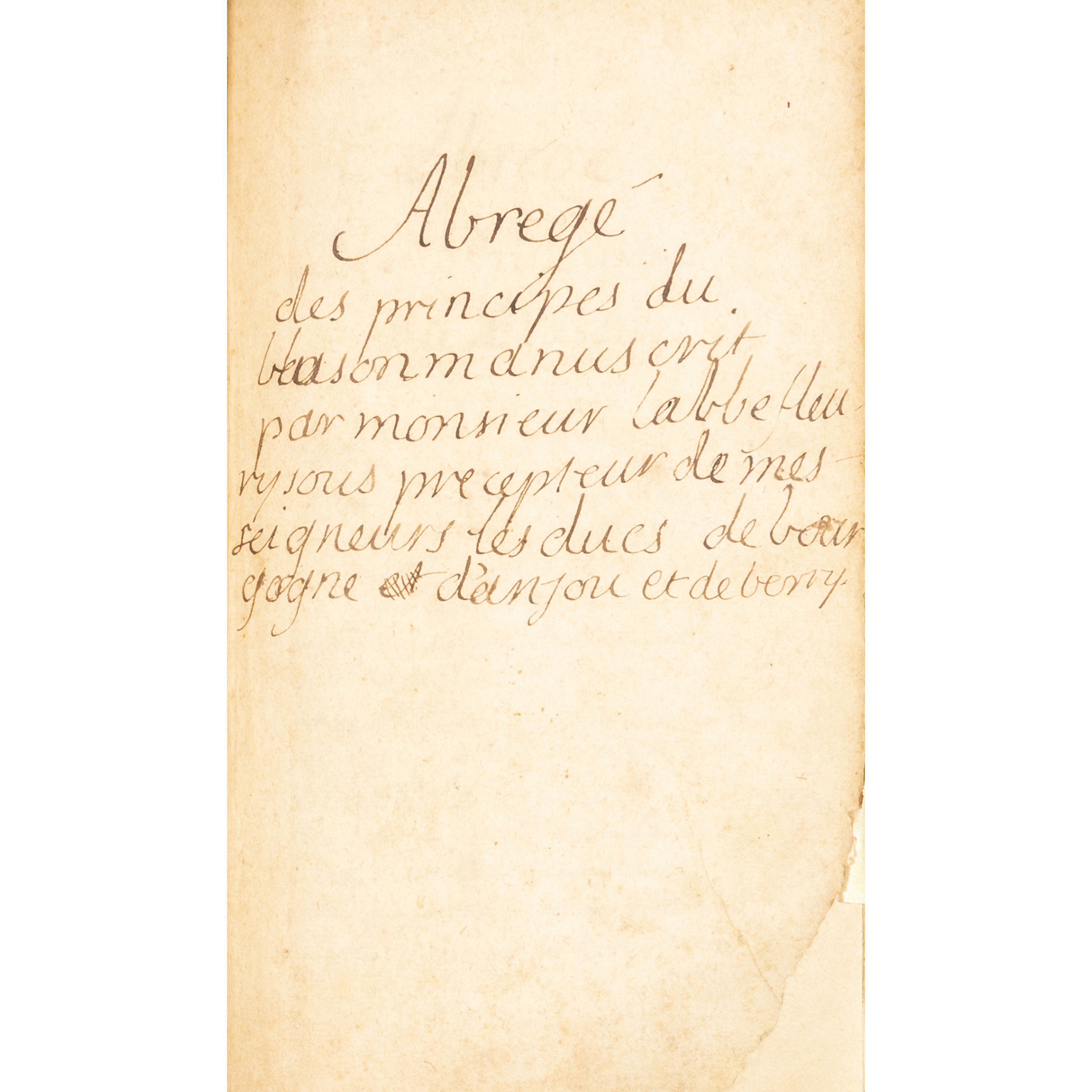Claude Fleury, Abr´g´ des principes du blason manuscrit par l'abb´ Fleury sous-pr´cepteur de mes seigneurs les ducs de Bourgogne, d'Anjou et de Berry.