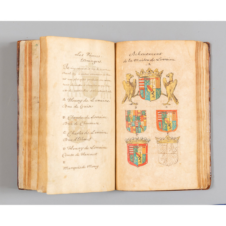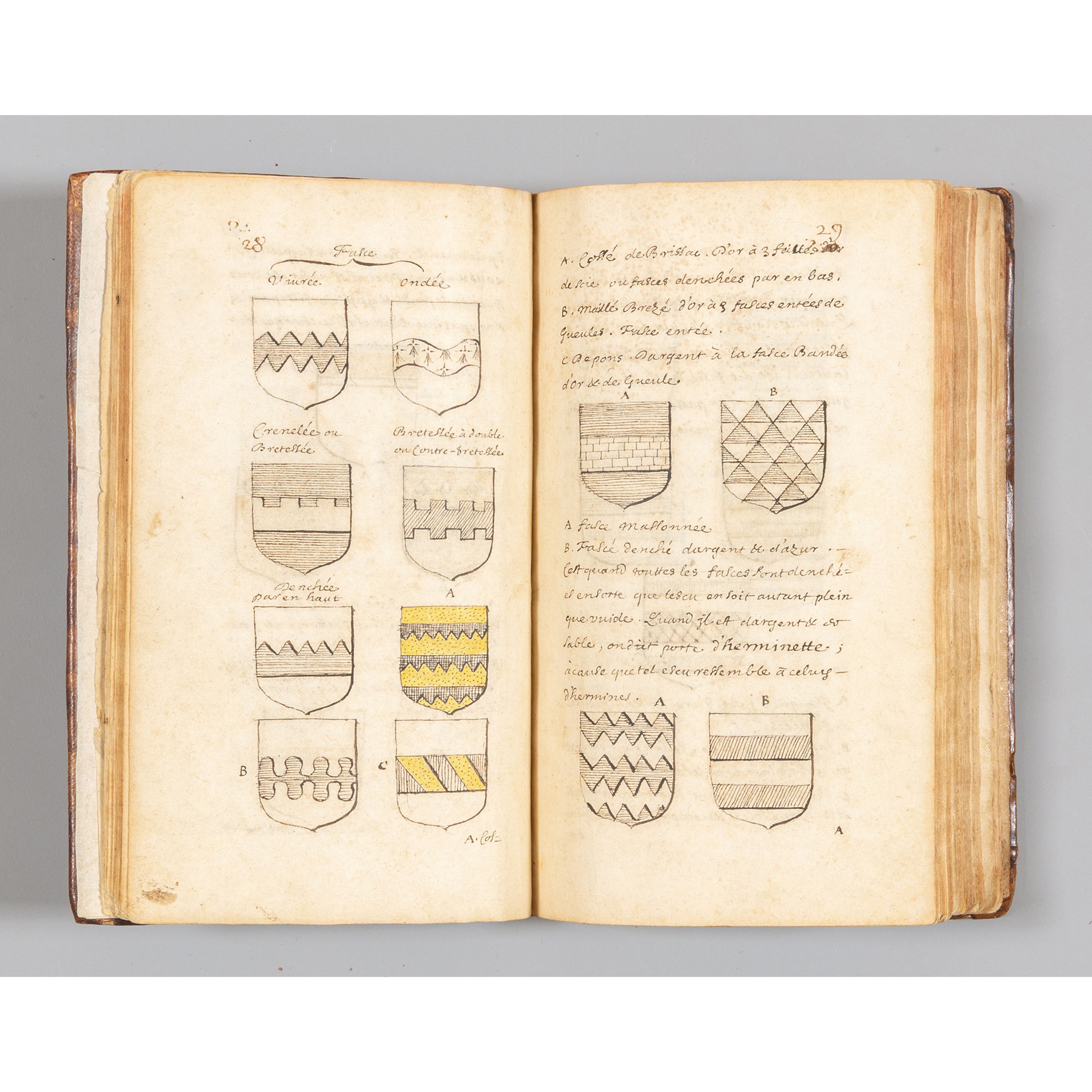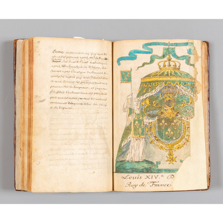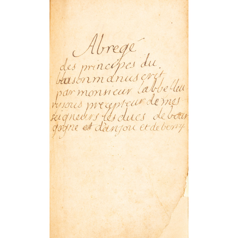 Manuale di araldica interamente autografo dell'abate Claude Fleury (1641-1723), sotto-precettore tra il 1689 e il 1705 dei figli del Grand Dauphin, nipoti di Luigi XIV, e più tardi confessore di Luigi XV. Fu autore dell'importante Histoire eccl´siastique (1691-1720), tradotta in seguito in italiano e tedesco.
