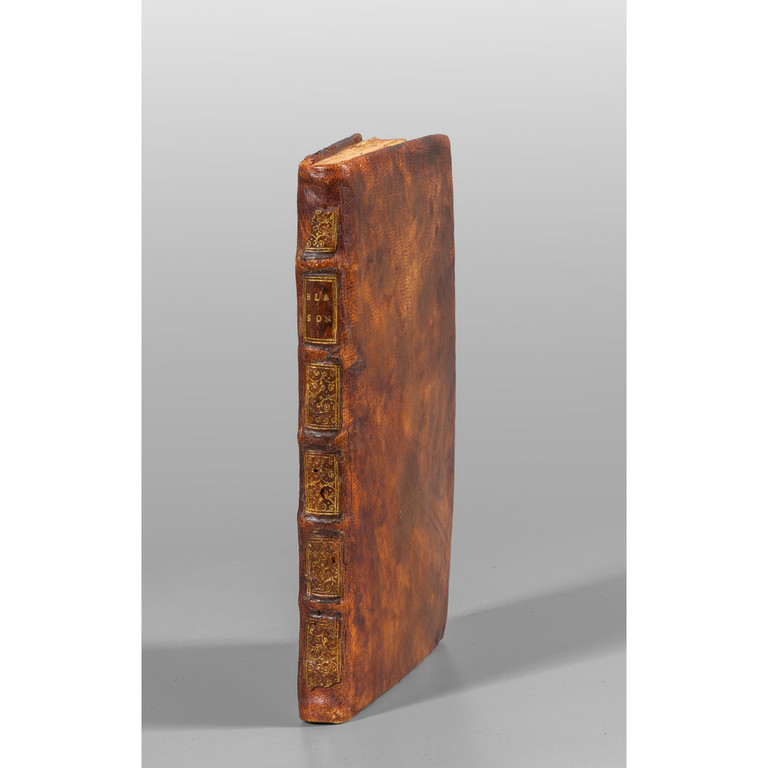 Legatura d'epoca in vitello spugnato con dorso a 5 nervi, con cassoni dorati e tassello del titolo in marocchino rosso; piatto posteriore rifatto. Testo in buone condizioni, eccettuate poche mancanze angolari restaurate.