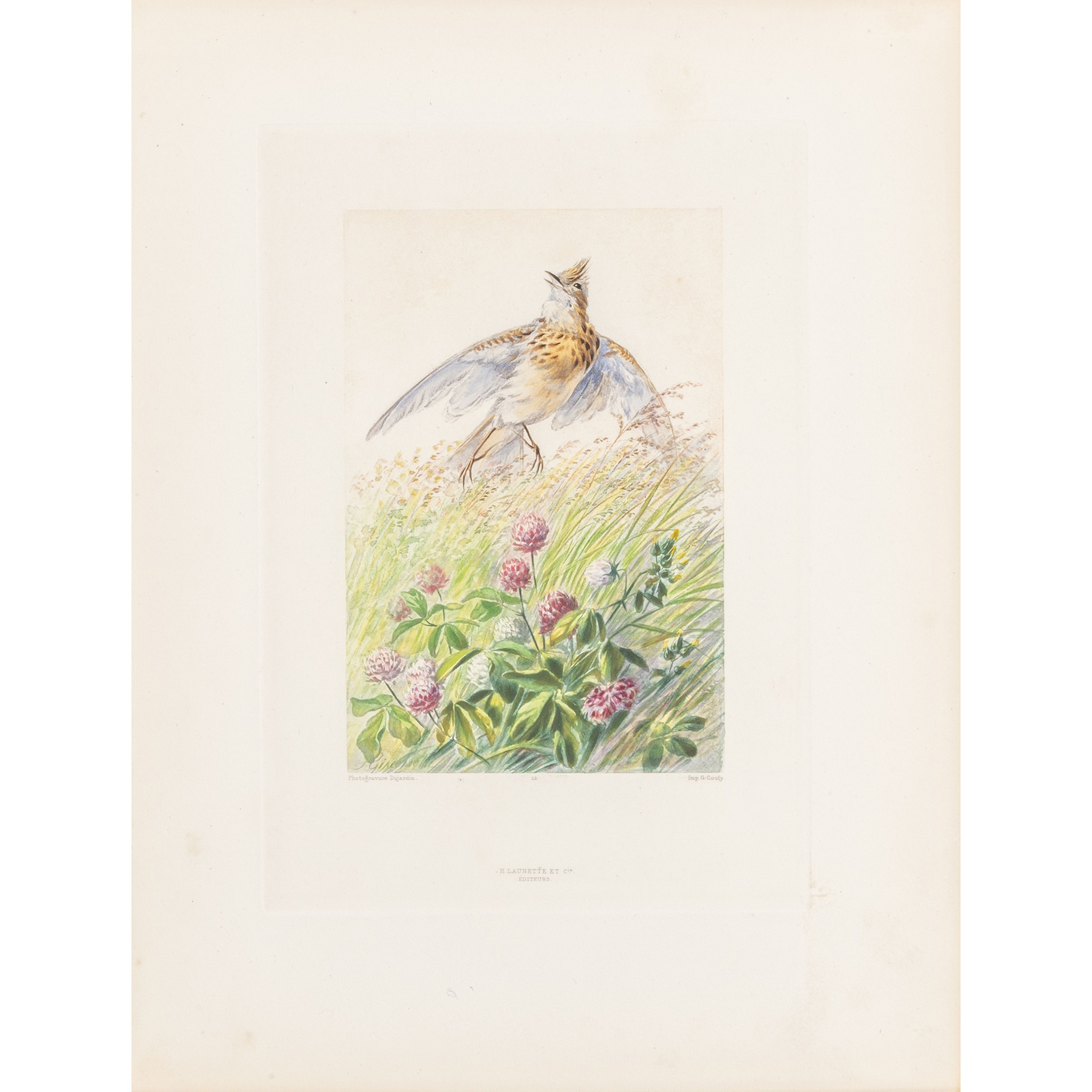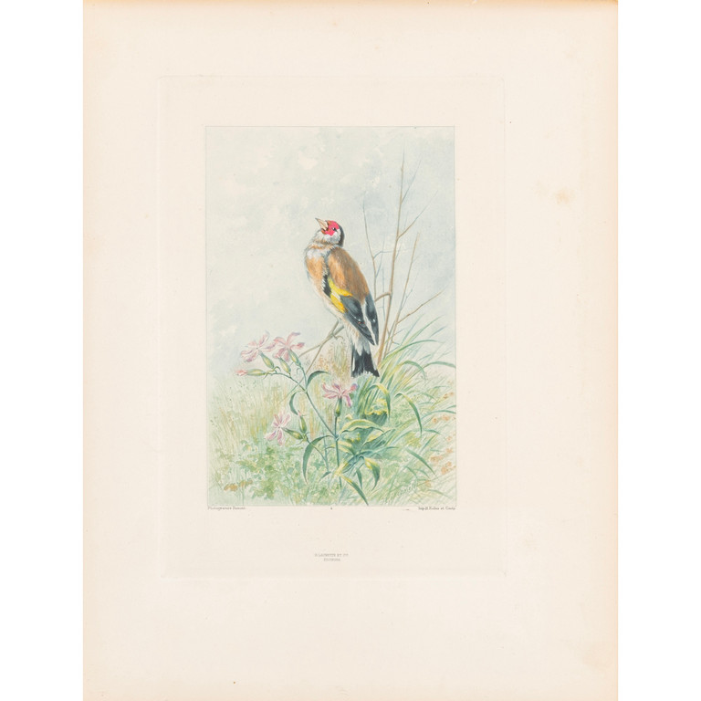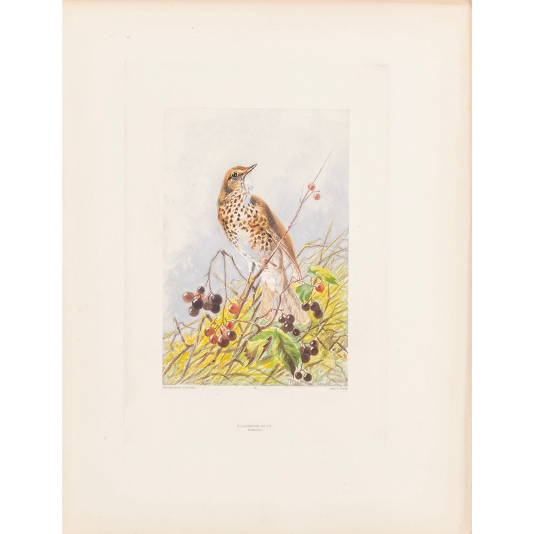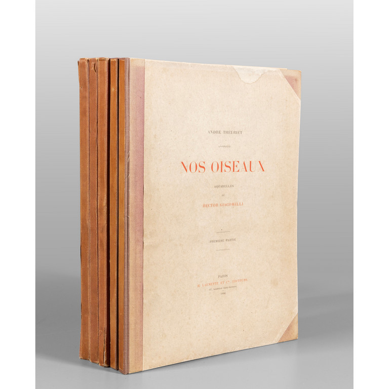 5 cartelle editoriali (mm 370x280), pp. XII, 90 di testo ornate di testatine e iniziali colorate, 118 fogli non numerati ornati da composizioni (testate, culs-de-lampe e 20 tavole a piena pagina ritoccate a mano) tratte da acquerelli di Hector Giacomelli (1822-1904).