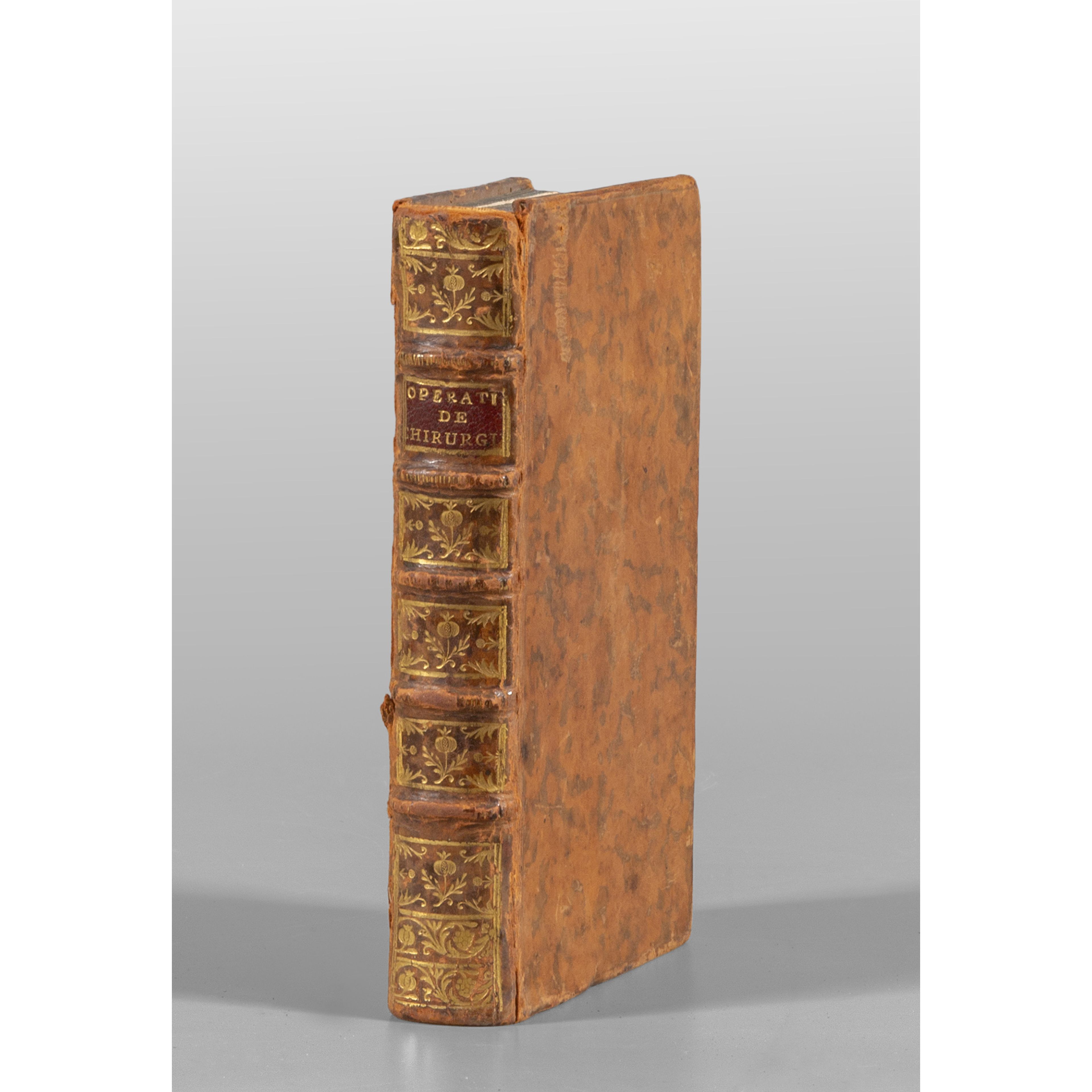 Legatura coeva in bazzana bionda, dorso a 5 nervi decorato in oro a fiorami, tasselli rossi, tagli marezzati. Testo e tavole in ottime condizioni.