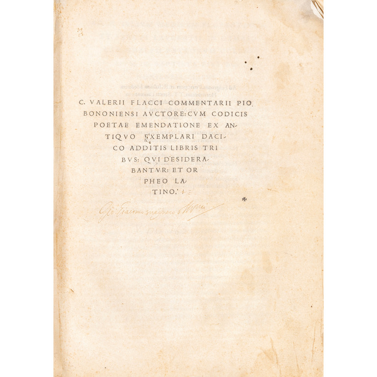 1)Valerio Massimo, C. Valerii Flacci comentarii Pio Bononiensi auctore, cum codicis poetae emendatione ex antiquo exemplari Dacico additis libris tribus, qui desiderabatur et Orpheo Latino.