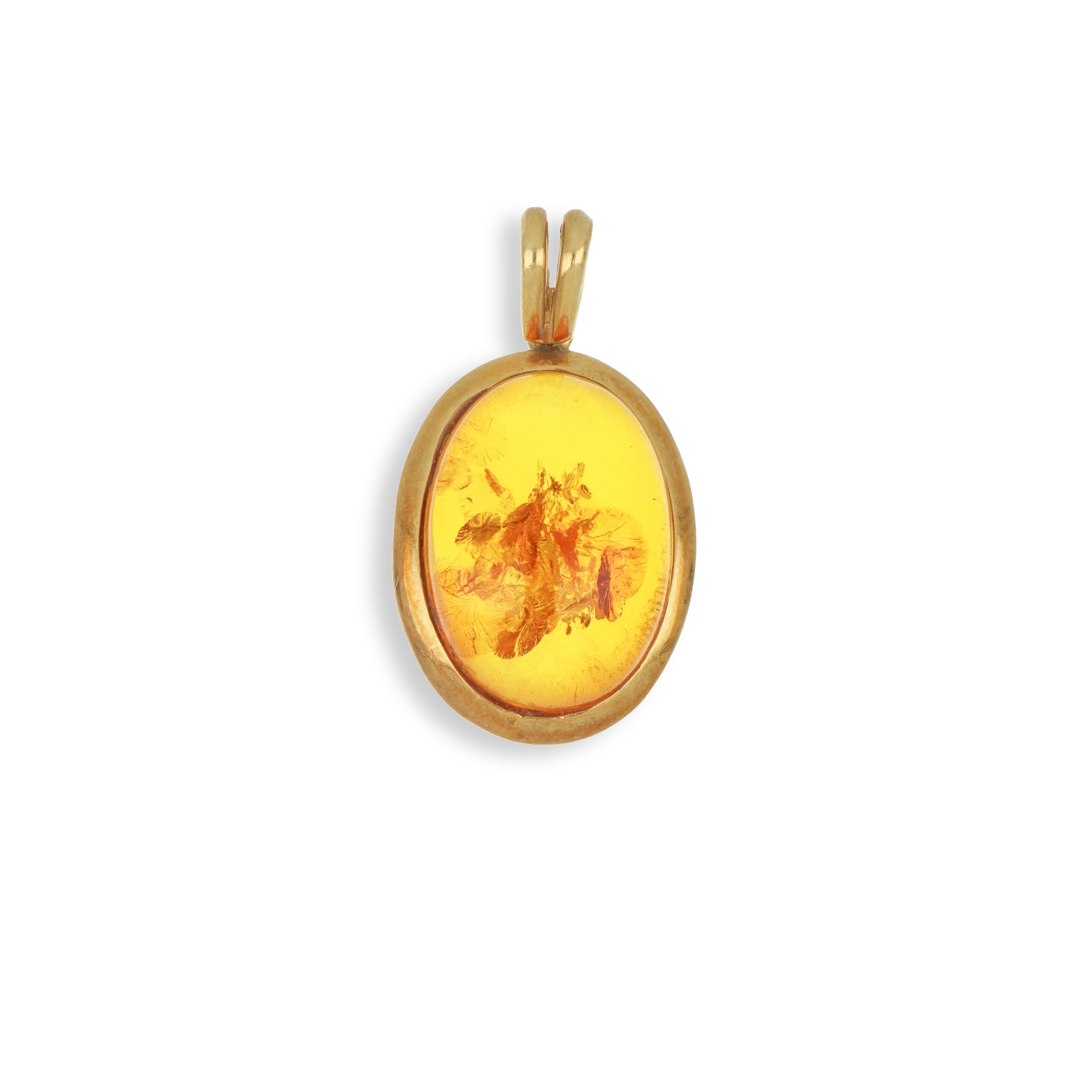 Ciondolo in oro giallo con cabochon di ambra mielata.