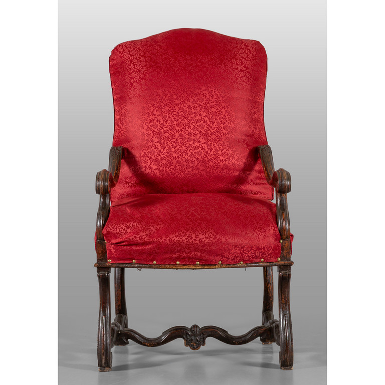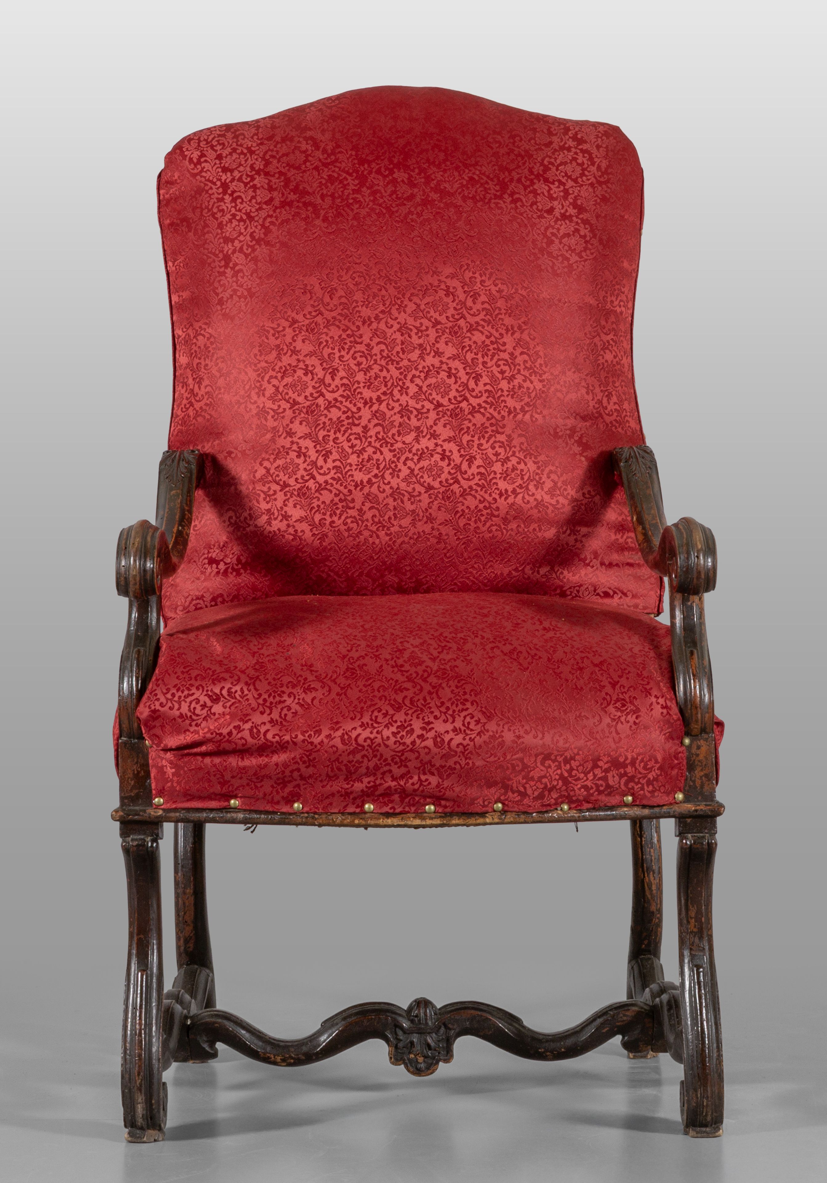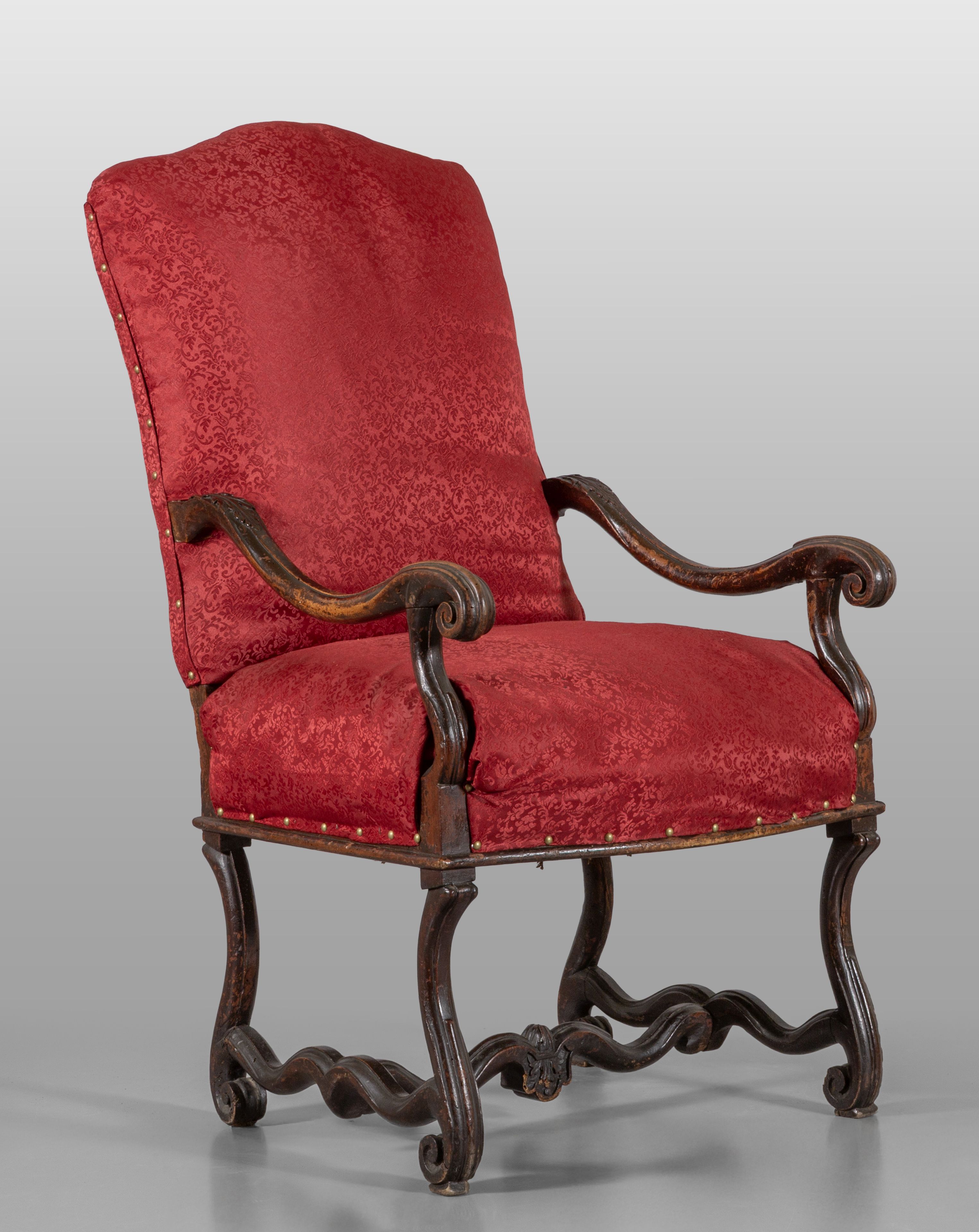 Poltrona ad osso di montone in noce tapezzata in velluto rosso, Genova sec.XVIII