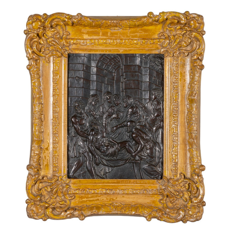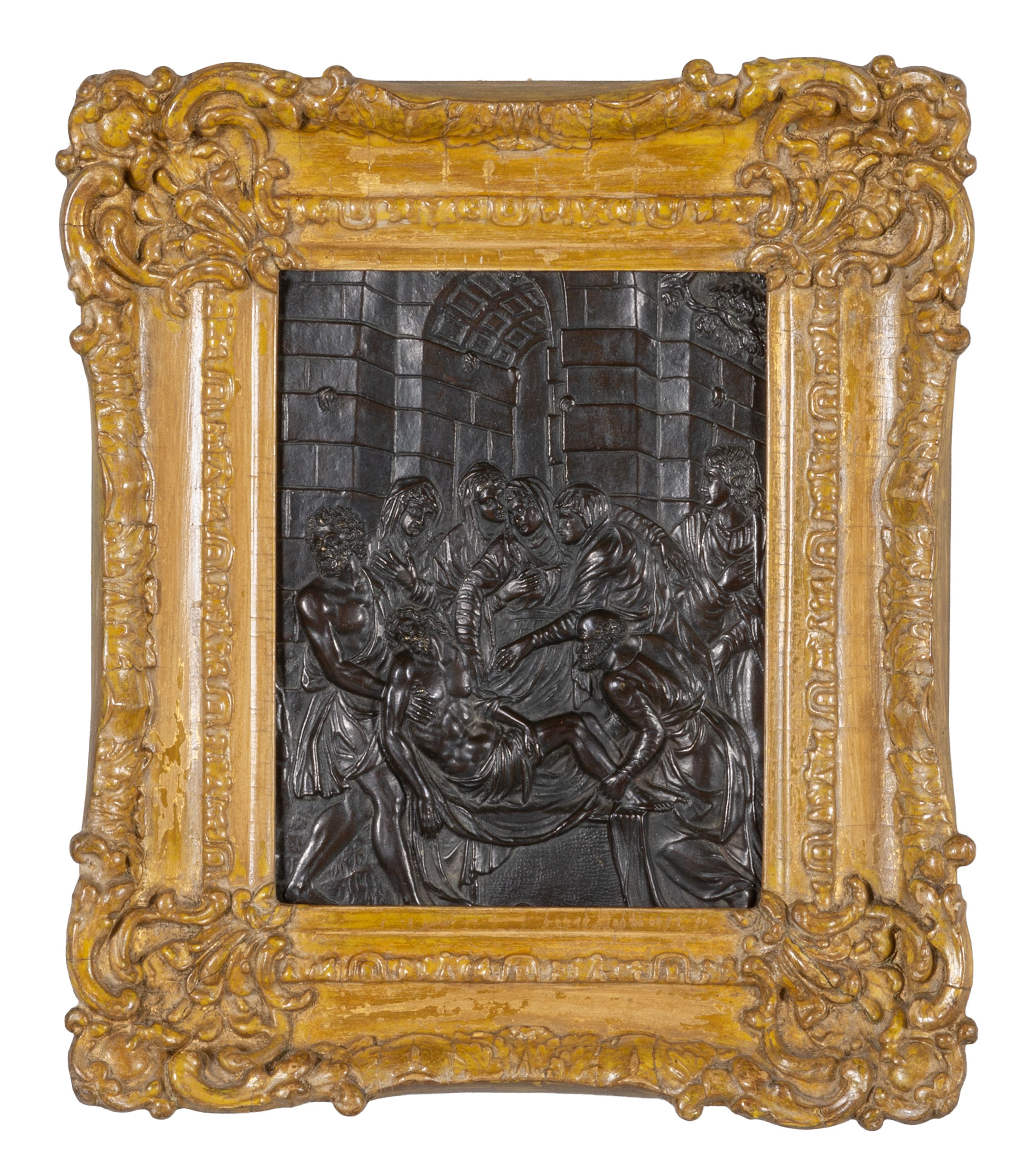 La Deposizione, placca in bronzo su modello di Girolamo della Porta, sec.XVIII, cornice non coeva