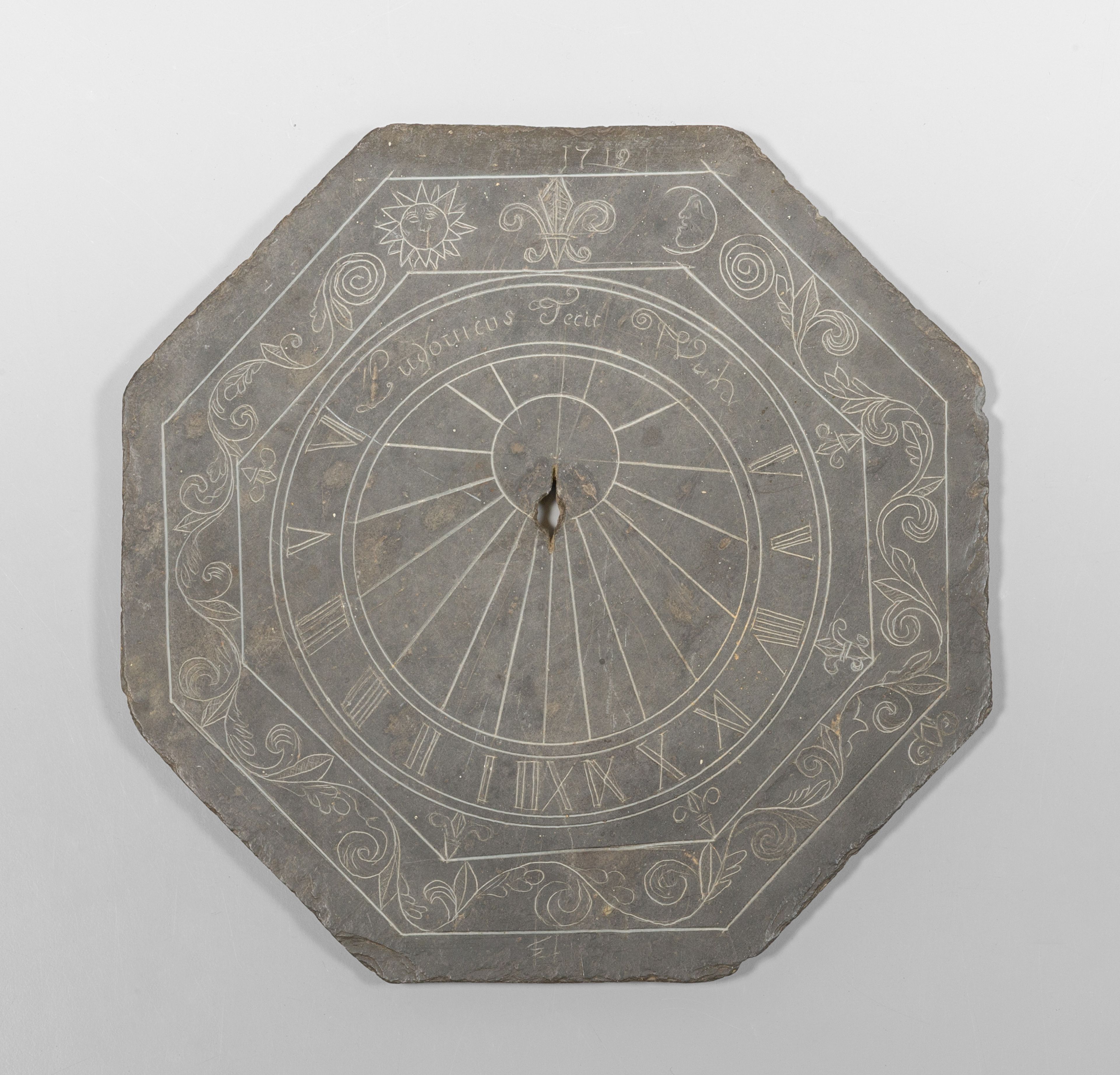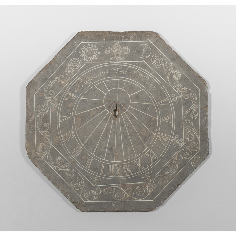 Meridiana in ardesia di forma ottagonale, f.ta 'Ludovicus fecit' e d.ta 1719