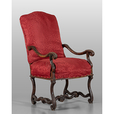 Poltrona ad osso di montone in noce tapezzata in velluto rosso, Genova sec.XVIII