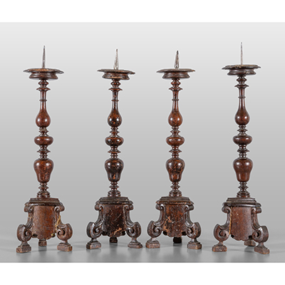 Quattro candelieri a rocchetto, sec.XVIII h.cm.42