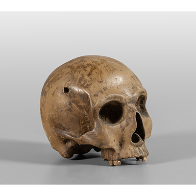 Teschio, scultura in legno laccato, sec.XIX h.cm.9