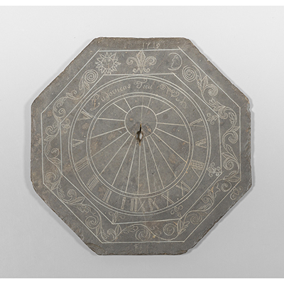 Meridiana in ardesia di forma ottagonale, f.ta 'Ludovicus fecit' e d.ta 1719 diam.cm.34