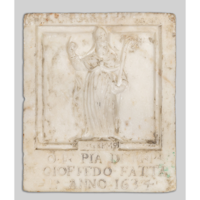San Gerolamo, placca in marmo statuario scolpito, d.ta 1634 cm. 22x h. 25,5