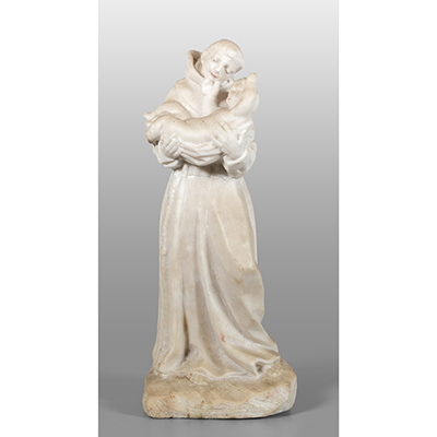 Sant'Antonio con in braccio il Bambino, scultura in marmo bianco, sec.XVIII h.cm.40, piccolo difetto