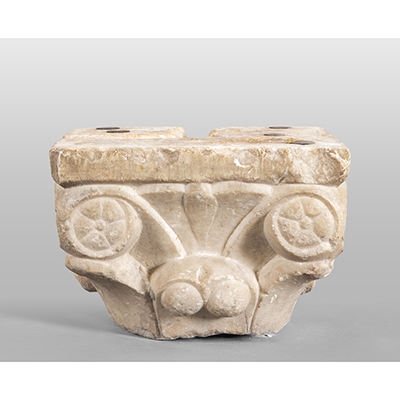 Capitello medioevale in marmo greco, sec.XV cm. 32x32 h. 23