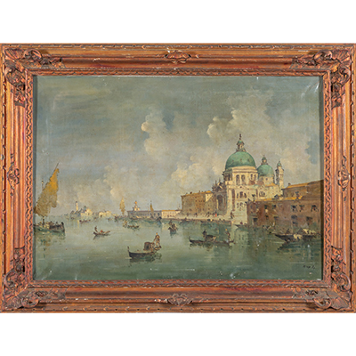 G.Riva (1890-1973) Veduta di Venezia olio cm.100x70 f.to in b. a ds.