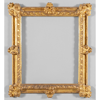Cornice in legno finemente intagliato e dorato, Toscana sec.XVIII cm.tot.75x83, luce cm.52x62