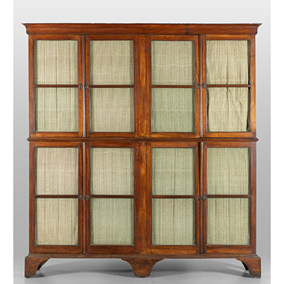 Libreria in noce a due corpi con ante a vetro, sec.XIX cm. 205x38 h. 222