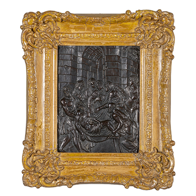 La Deposizione, placca in bronzo su modello di Girolamo della Porta, sec.XVIII, cornice non coeva cm. 18x23